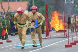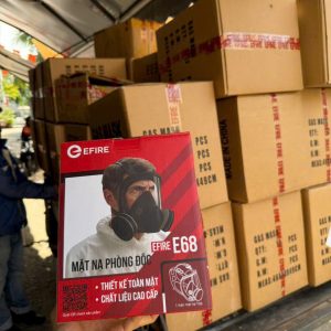 -Khẩu trang chữa cháy (Mẫu số 06): Màu trắng, 4 lớp (có lớp than hoạt tính), dây đeo tai, ôm sát mũi miệng.