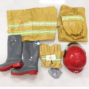 -Găng tay chữa cháy (Mẫu số 05): Màu vàng, chất liệu polyester/cotton, chịu nhiệt, có dải phản quang.